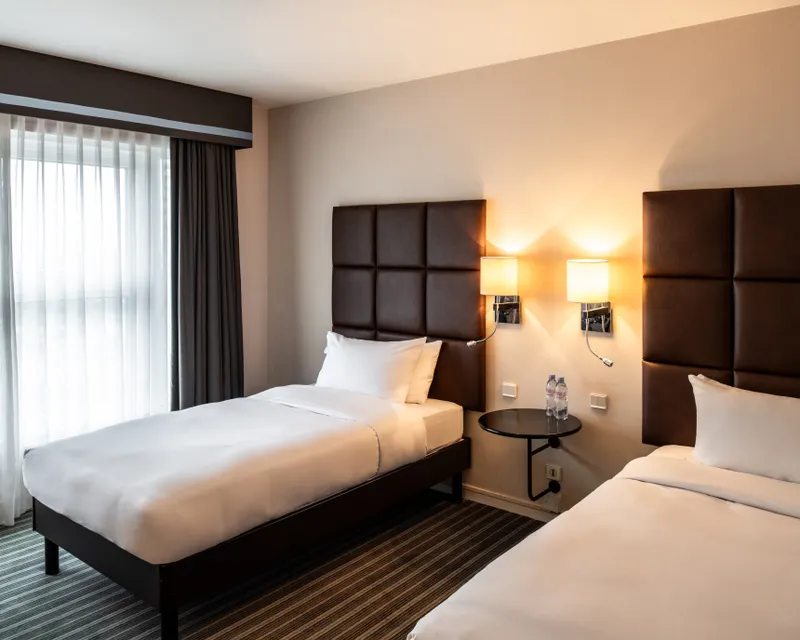 Avec une superficie généreuse de 27 m², nos chambres Standard vous offrent un espace confortable et fonctionnel, idéal pour vos séjours à proximité de l’aéroport.
