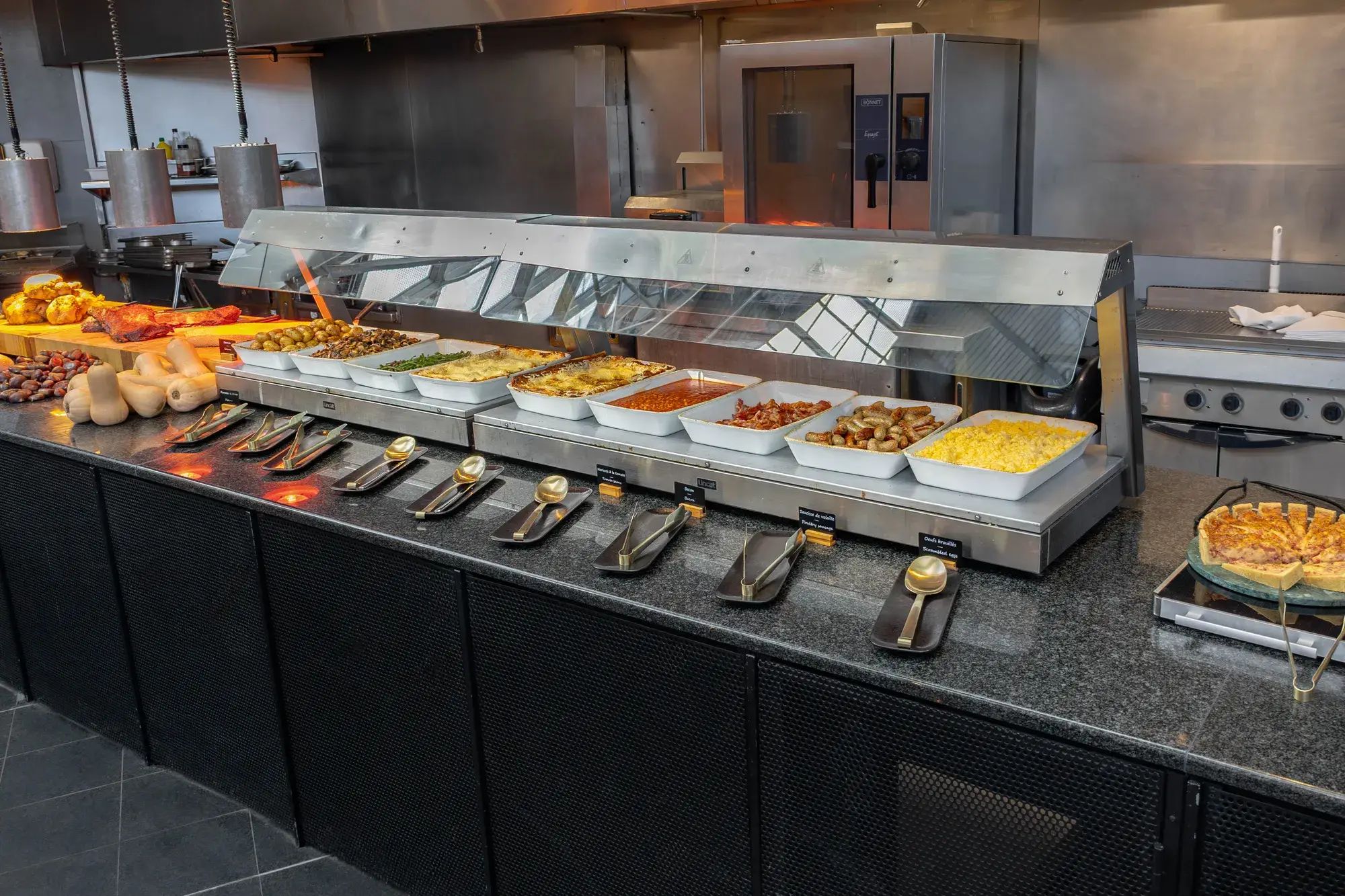 Auf der herzhaften Seite stellen Sie Ihren Teller nach Ihren Wünschen zusammen: frische Salate, hausgemachte Terrine, feine Wurstwaren und gereifte Käsesorten. Das warme Buffet würdigt die Klassiker des Brunchs - Rühreier, Speck, Würstchen - sowie köstliche Gerichte wie Lachs, Rinderbraten oder Hähnchen, begleitet von saisonalem Gemüse.
